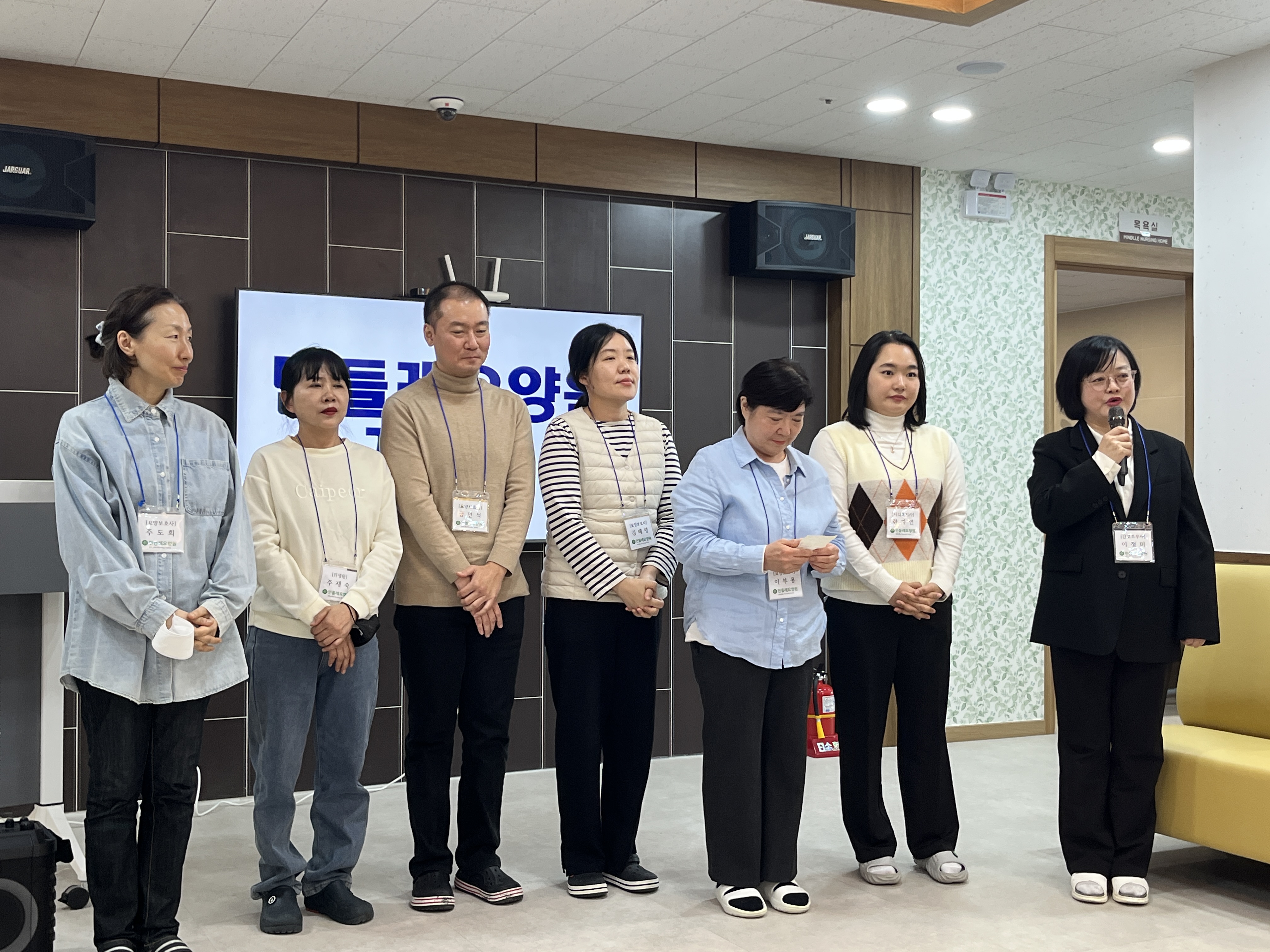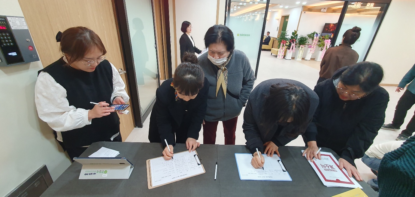 요양원 신입직원 이정미 선생님의 사회로 진행된 개소식에서 '대의원총회 결의-조합원워크숍-조합원추진단 활동' 등 매과정을 함께 했던 조합원들은 또 한번 <자원봉사자>로 함께 해 주셨습니다. 고맙습니다^^